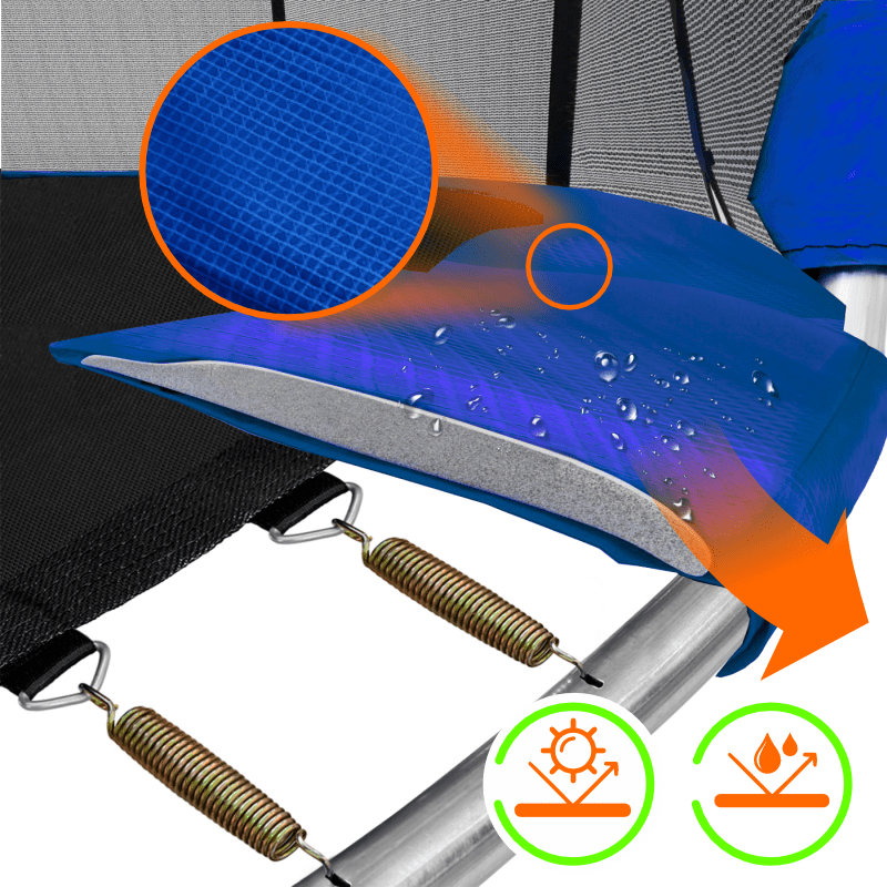 • Прыжковое полотно и чехлы устойчивы к UV-излучениям и к плохим погодным явлениям.
