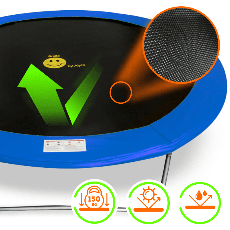 • Прыжковое полотно и чехлы устойчивы к UV-излучениям и к плохим погодным явлениям.