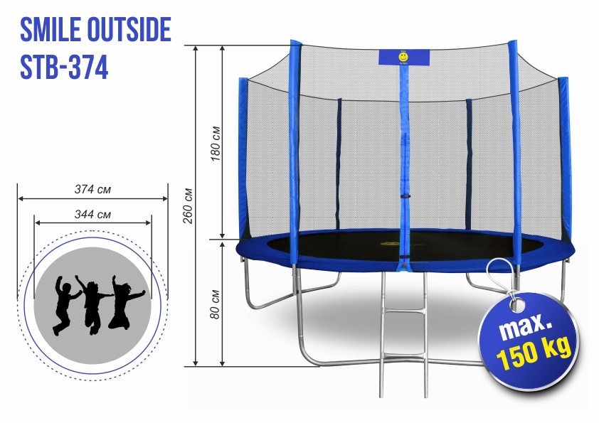Особенности батута Smile STG-374 12ft (374 см.):
