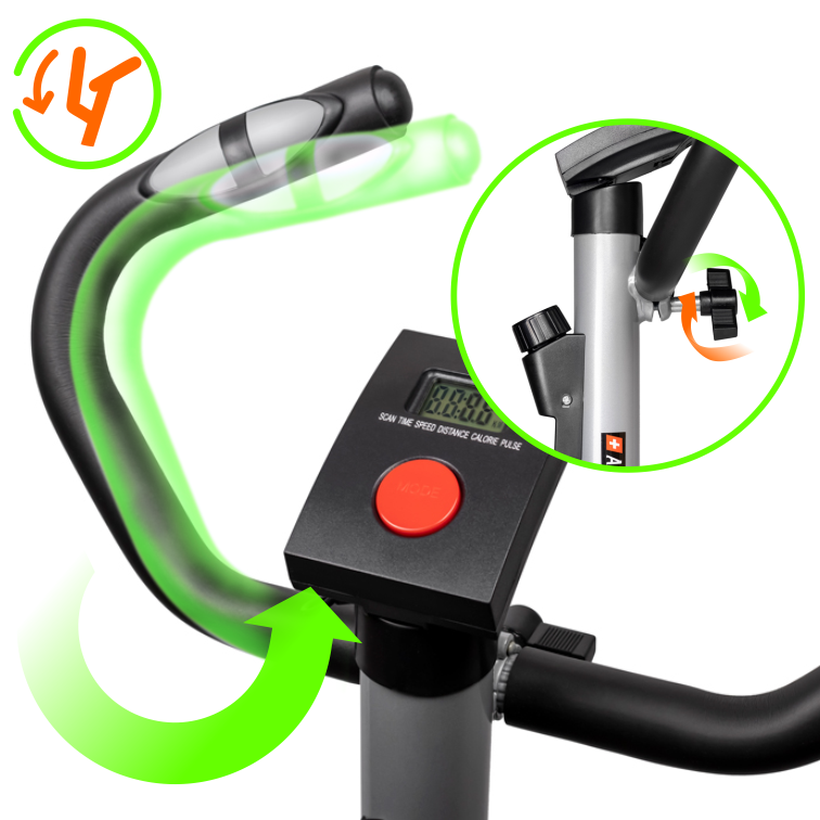 Велотренажер удобно перемещать благодаря малому весу, а точное горизонтальное положение обеспечивают компенсаторы неровностей пола на задней опоре.