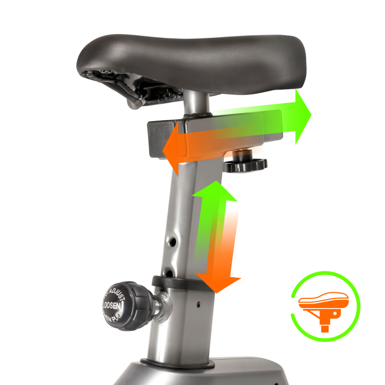 За показатели пульса отвечают вмонтированные в рукоятки сенсорные датчики пульса. Велотренажер удобно перемещать благодаря двум транспортировочным роликам, а точное горизонтальное положение обеспечивают компенсаторы неровностей пола.